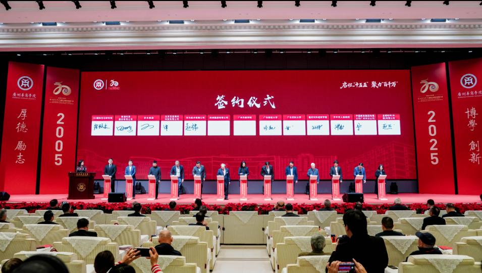 12月26日上午,广州华商学院建校20周年发展大会在华商会议展览中心华僖礼堂隆重举行。大会以“启程‘十五五’ 聚力‘百千万’”为主题,回顾二十载办学征程,凝聚发展共识,汇聚奋进力量,全面开启学校“十五五”高质量发展新篇章。