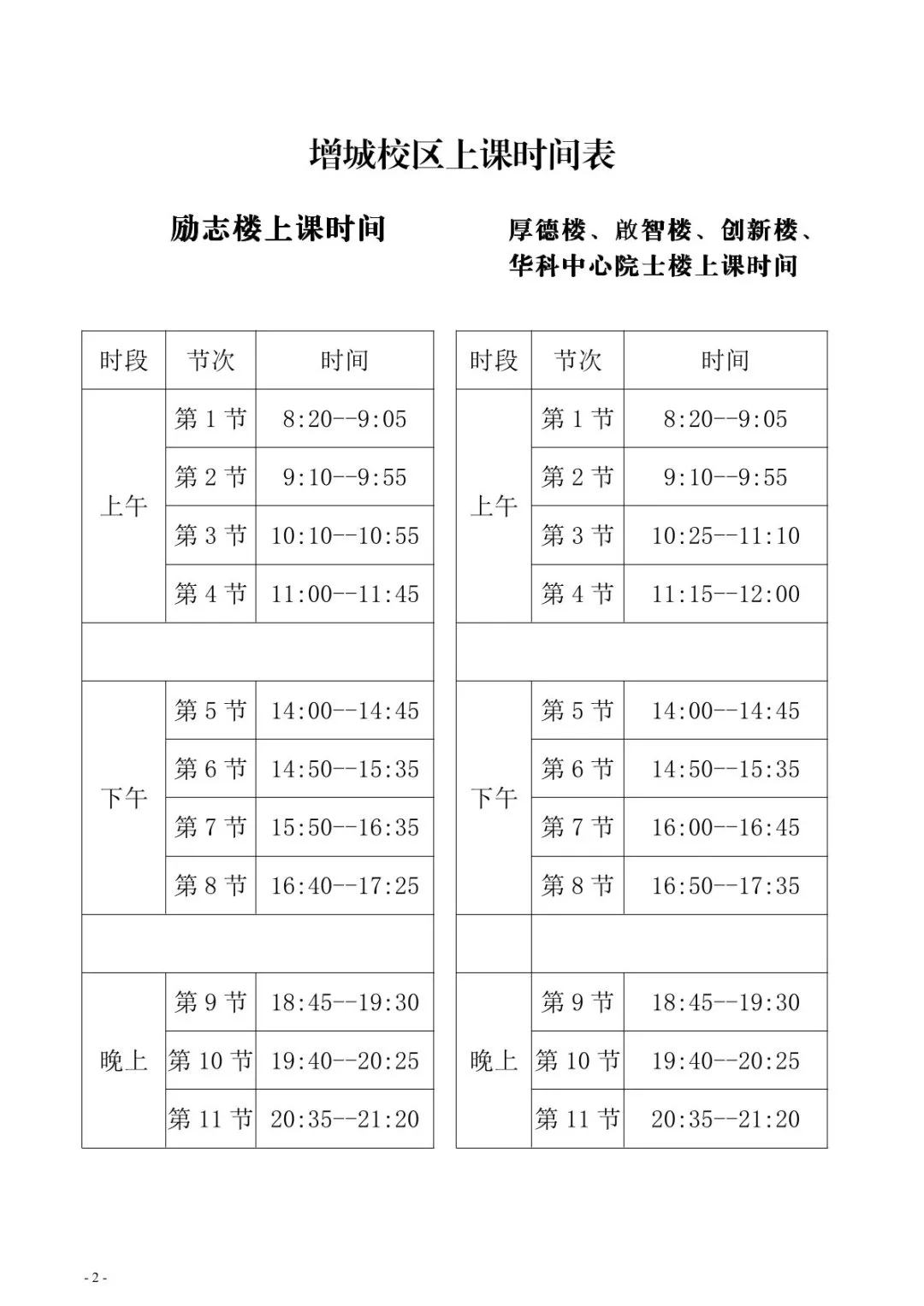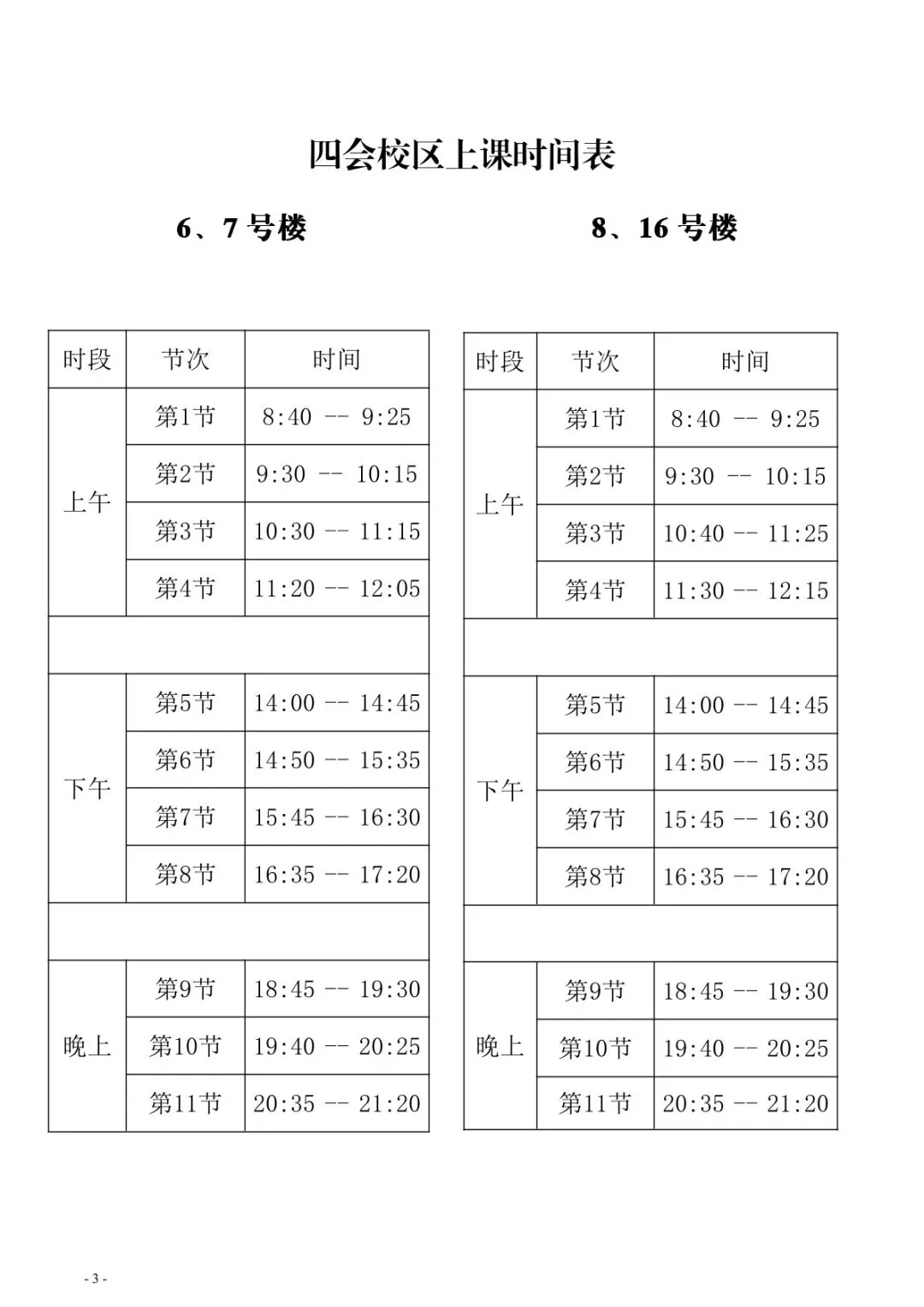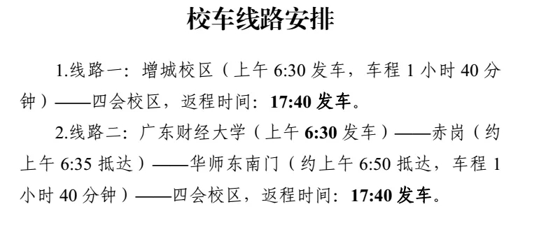 两校区上课和乘车时间